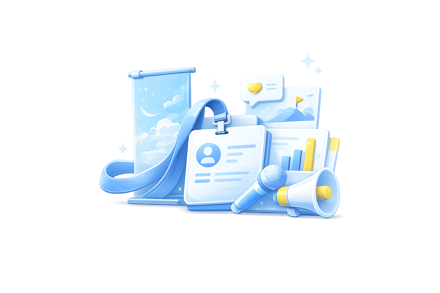 Polished, cohesive visuals for every touchpoint: print signage, digital materials, and social media promotion to elevate your event's impact.