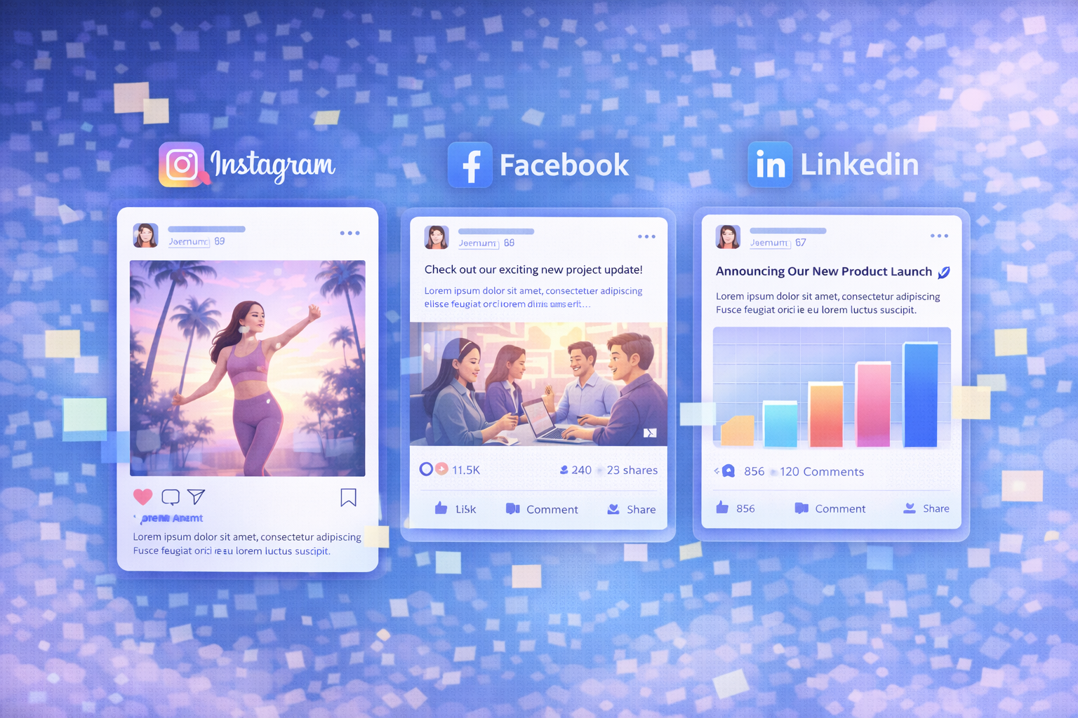 Content built specifically for Instagram, Facebook, and LinkedIn—not resized leftovers.